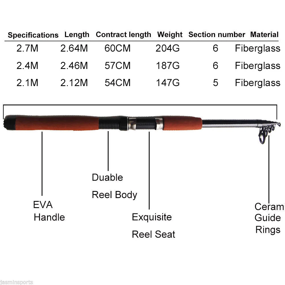 Order 2.1m-2.7m Telescopic Fishing Rod Combo and Reel Full Kit Spinning Fishing Reel Pole set 100M Fishin